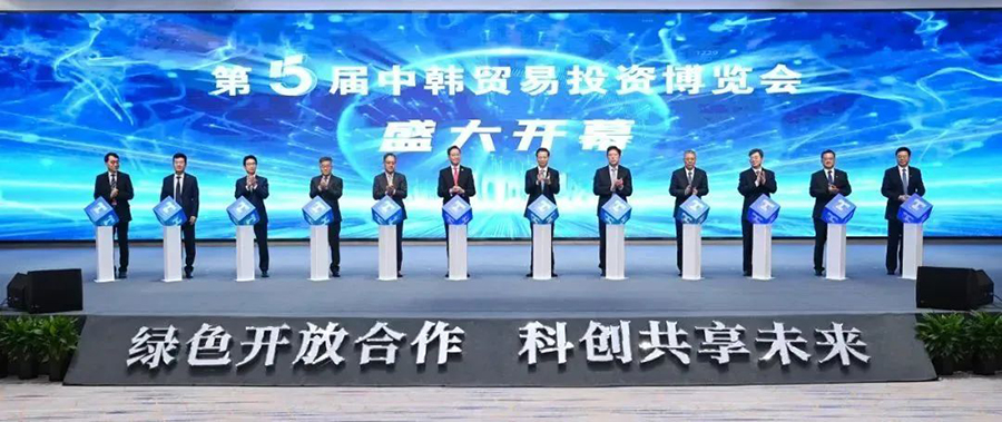 11月3日,第五届中韩贸易投资博览会开幕式暨江苏—韩国经贸合作交流会在盐城举行。省长许昆林,韩国驻华大使郑在浩,中国贸促会副会长于健龙出席并致辞。省政府秘书长吕德明,韩国驻上海总领事金英俊,来自中韩等国政府部门负责人、专家学者、企业家400余人参加活动。代表市委、市政府向海内外朋友发出诚挚邀请,期待大家选择盐城、携手盐城,共拓产业蓝海、共赴星辰大海,成为彼此成就的“命运共同体”。省商务厅厅长陈涛介绍江苏支持韩资企业发展政策举措与合作愿景。市委副书记、市长张明康推介盐城经济社会发展情况。市人大常委会主任王荣、市委副书记羊维达等市四套班子领导同志参加。