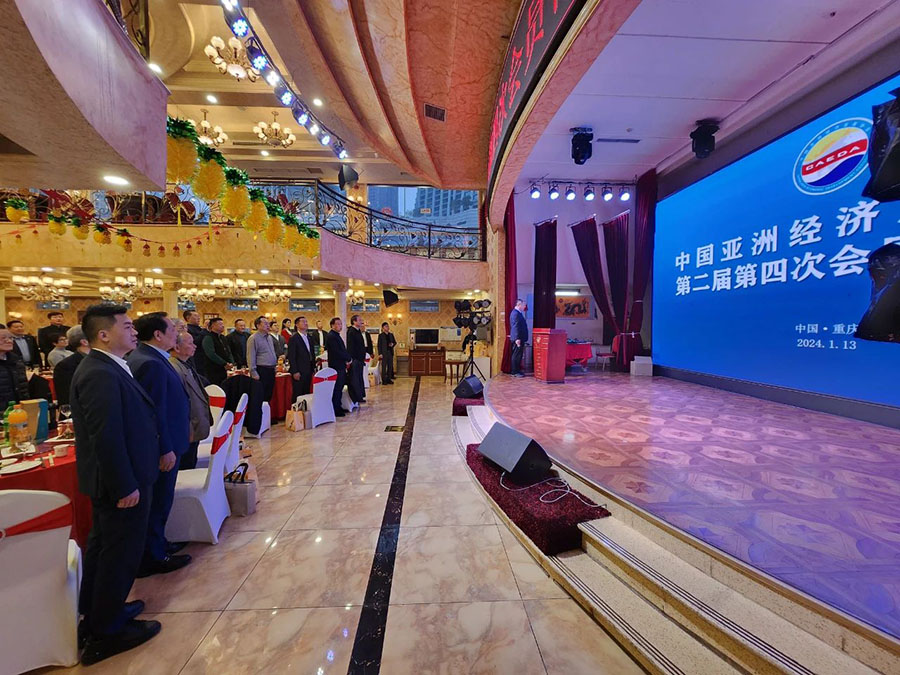 2024年1月13日,中国亚洲经济发展协会第二届第四次会员代表会议在重庆成功召开,联合国前副秘书长沙祖康,中国驻日本、韩国、马来西亚前大使程永华,国家旅游局原纪检组组长刘金平,亚经协创会会长、中国驻泰国、新加坡、尼泊尔前大使张九桓,中国驻韩国、尼泊尔前大使邱国洪,中国民主建国会中央委员、社会服务部部长包瑞玲,中国驻釜山前总领事刘谨凤,亚经协高级咨询专家李中彦,无锡市第十六届人大党组成员王中苏,亚经协会长权顺基,执行会长刘红路,常务副会长兼秘书长陈军、常务副会长尚寿山、杨大陆、梁玉师、徐国伟、吴万良、杨书华、邓伟、廖斌、刘志贵、李洪彦、赵光明、刘湛清、衣宏伟,副会长宋远征、副会长兼绿色数字生态发展委员会会长潘巧等和部分亚经协副会长、分支机构负责人、直属部门负责人120人参加会议。会议由亚经协执行会长刘红路主持。